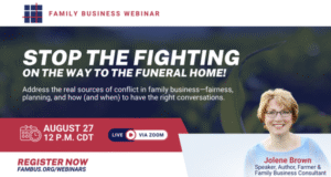 Hear Jolene Brown — a champion for the people of agriculture through her writing, keynotes, and workshops — address how to save your family from fighting on the way to the funeral home.