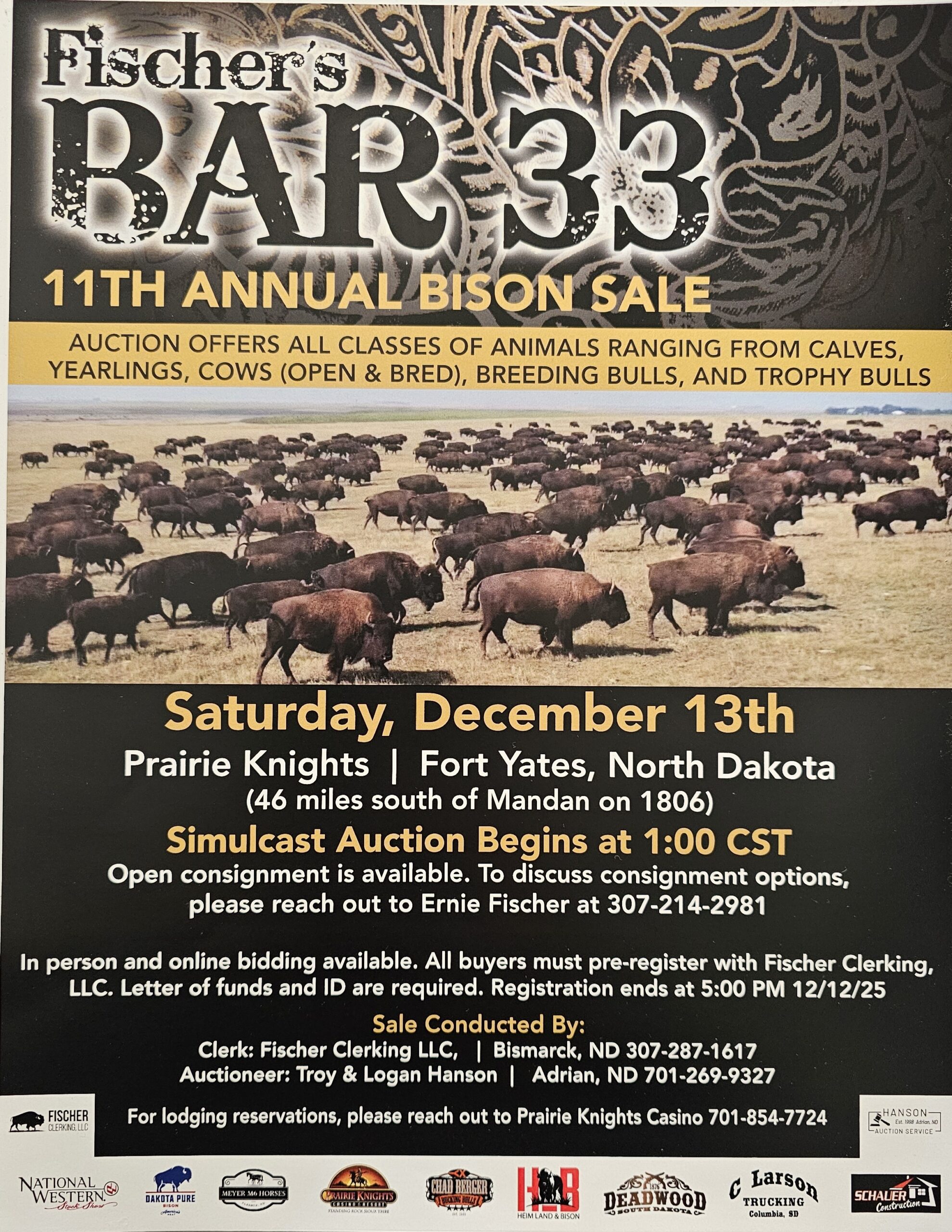 Open consignments are accepted until Monday, December 8, 2025. If you're interested in consigning animals, please don’t hesitate to reach out to Ernie Fischer at 307-214-2981 or Amanda Fischer at 307-287-1617. We’re here to assist you with the process and answer any questions you may have.